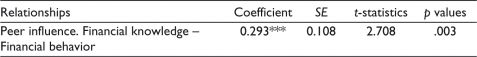 Table 10.Results of Moderating Impact of Peer Influence on the Effect of Financial Knowledge on Financial Behavior.