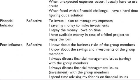 There is a lack of empirical studies on financial literacy as a broader concept that includes financial knowledge, behavior, and attitude (Huston, 2010). Our study aims to empirically validate the structural relationship between financial knowledge, attitude, efficacy, peer influence, and behavior. It is the first-ever study to validate the structural model in India’s context of group lending.